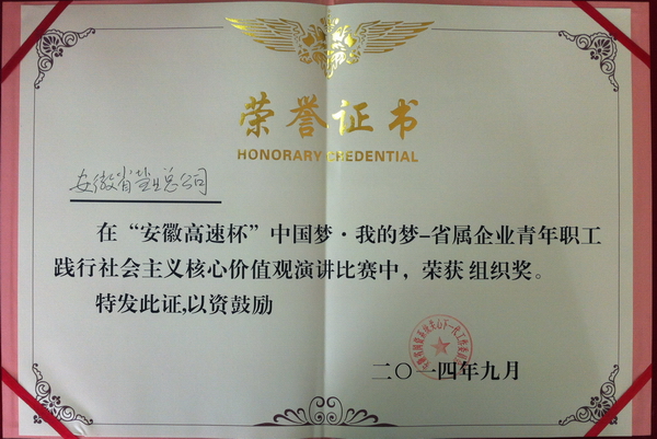 9月26日下午,由安徽省關(guān)心下一代工作委員會(huì)、安徽省國(guó)資系統(tǒng)關(guān)心下一代工作委員會(huì)主辦的“安徽高速杯”中國(guó)夢(mèng)·我的夢(mèng)——省屬企業(yè)青年職工踐行社會(huì)主義核心價(jià)值觀演講比賽決賽,在安徽省高速集團(tuán)隆重舉行。省公司在此次比賽中榮獲集體組織獎(jiǎng),代表省公司參加比賽的廬江縣公司職工柯君憑借雄厚的實(shí)力和精彩的發(fā)揮榮獲個(gè)人一等獎(jiǎng)。