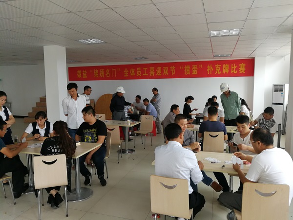 為迎接即將到來(lái)的中秋和國(guó)慶佳節(jié),同時(shí)加強(qiáng)公司各部門之間的聯(lián)系,方便日常工作的順利開展,活躍公司內(nèi)部員工工作氣氛,激發(fā)公司員工的工作熱情。9月21日,“徽鹽?錦繡名門”項(xiàng)目公司食堂熱鬧非凡,公司各部門員工共同參加喜迎雙節(jié)“摜蛋”撲克牌比賽。