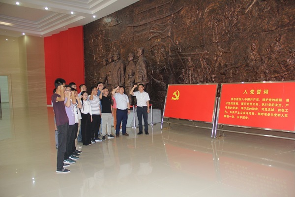藕塘為抗日戰(zhàn)爭時期津浦路西革命根據(jù)地中心,素有“小莫斯科”之譽稱,是我省首批愛國主義教育基地。在莊嚴肅穆的烈士陵園,全體人員首先在講解員的帶領(lǐng)下依次參觀了藕塘紀念館的各個展區(qū),觀看珍貴的文物、文獻、照片等資料,回顧黨的光輝歷程,追尋英雄足跡,緬懷先烈事跡,再次被劉少奇、葉挺、羅炳輝等老一輩無產(chǎn)階級革命家的壯烈事跡所感動。隨后來到紀念館大廳前,全體黨員面對鮮紅的黨旗,重溫入黨誓詞,進一步牢固“不忘初心、牢記使命”的政治信念。